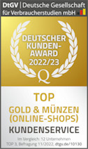 Eine ausführliche Übersicht der Münzen und Barren aus Edelmetallen finden Sie in unserem Münzkatalog.